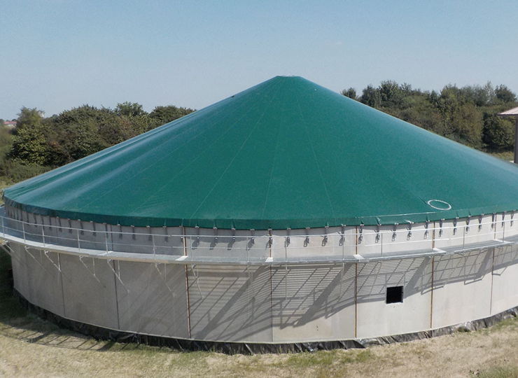 Our tailor-made emission protection covers, which are braced via a centre support, are an ideal solution for your slurry tank. They ensure effective protection against emissions and are equipped with a practical inspection and service opening, which we can also supply in larger versions on request.