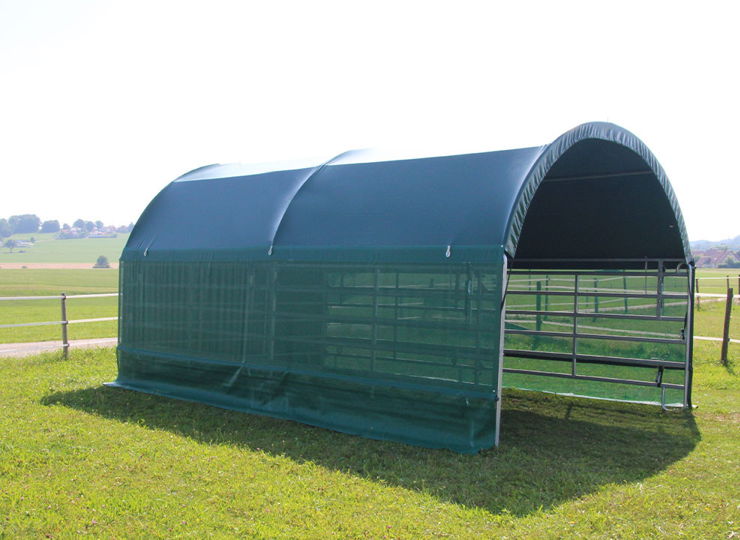 Our mobile foil shelter is more than just a pasture tent. It provides sufficient space for feeding, overnight accommodation for animals or as a storage area for hay and straw bales and beyond.
